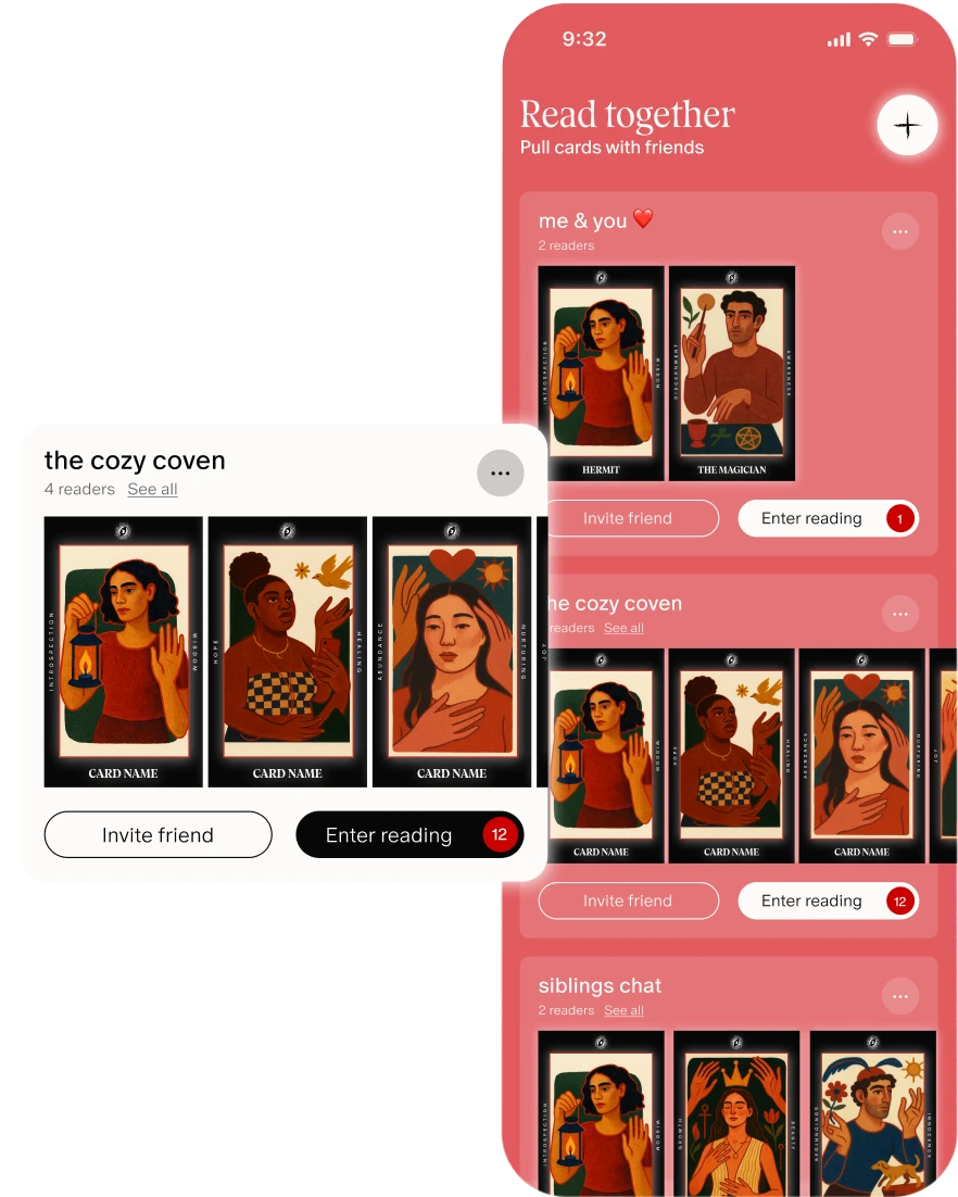 Create group tarot readings, learn about your relationships and swap insights